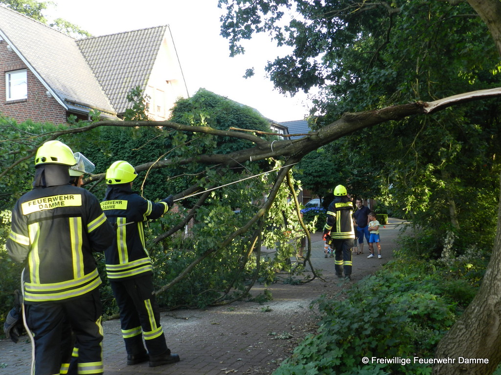 Um 19:08 wurde die Feuerwehr Damme zu einer technischen Hilfeleistung in der Friedrichstr. alarmiert. Aus einem Baum war ein Ast abgebrochen und ragte in die Fahrbahn herein. der Ast wurde entfernt und anschließend noch die verschmutzte Straße gereinigt.