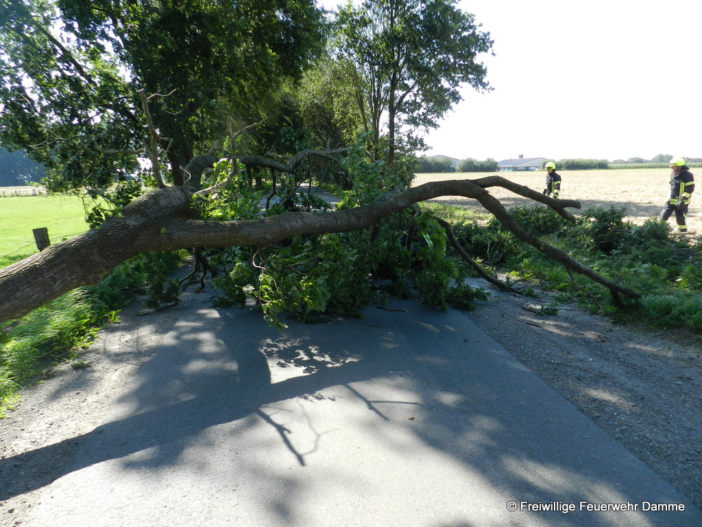 Um 11:55 wurde die Feuerwehr Damme zu einer technischen Hilfeleistung auf der Campemoorstr. in Rottinghausen alarmiert. Es war ein Baum umgestürzt und lag quer zur Fahrbahn. Diese war dardurch komplett blockiert. Mittels Motorkettensäge wurde die Gefahrenstelle rasch beseitigt.