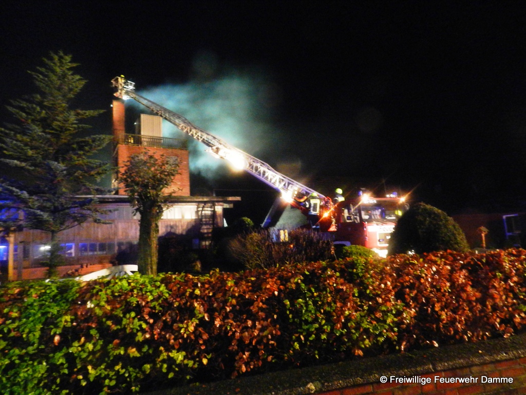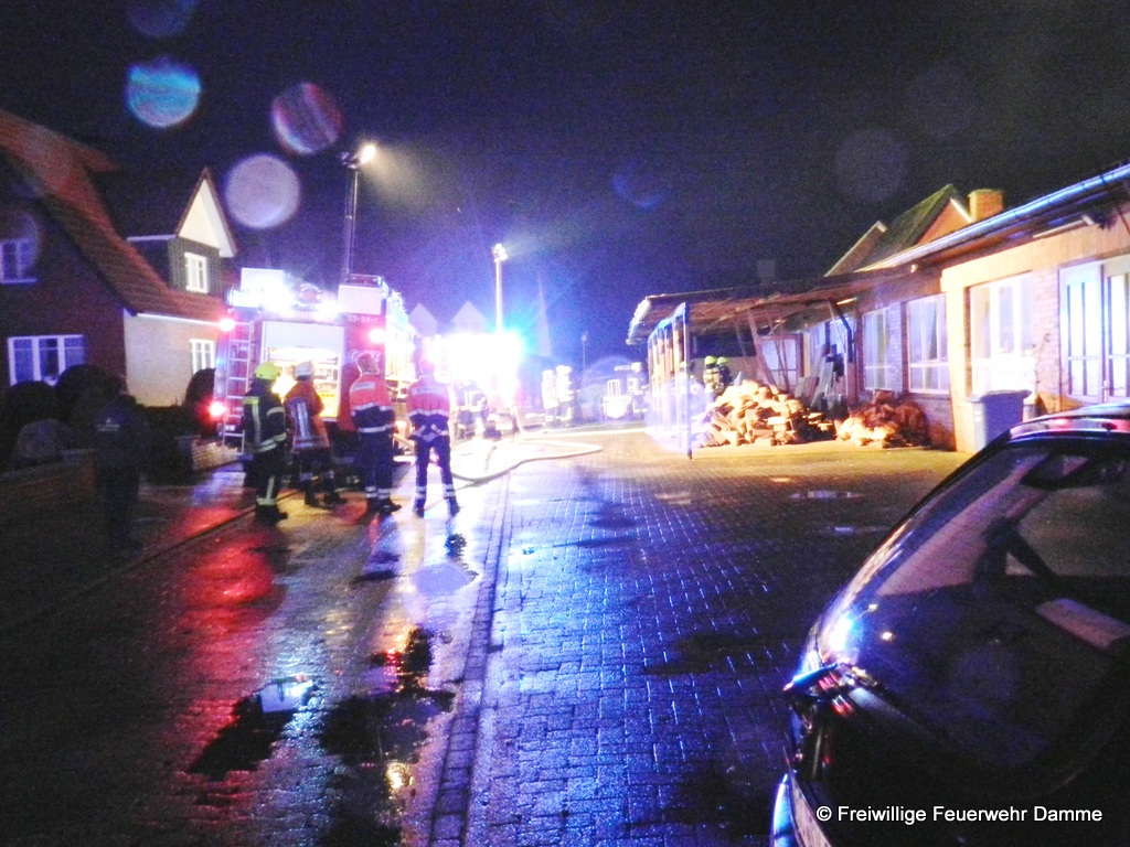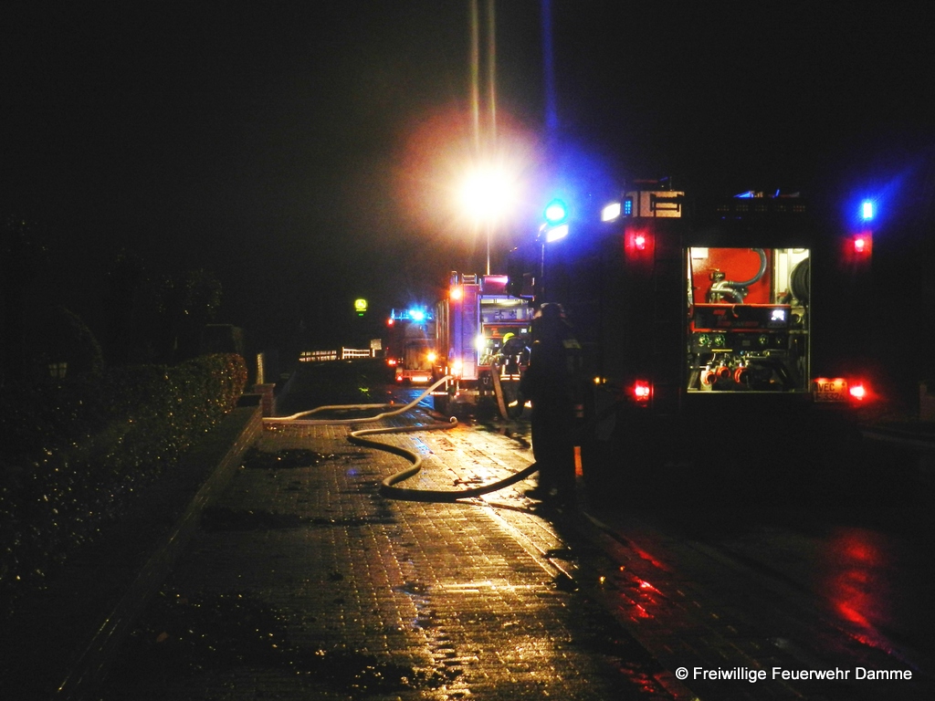 Im Einsatz: TLF 16/25, TLF 20/40 SL, DLK 23/12, ELW 1, FF Osterfeine, FF Borringhausen, RTW 1 Malteser Damme, Polizei Damme