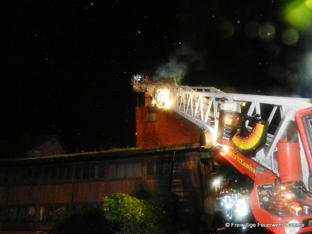 Um 16:34 wurde die Feuerwehr Damme zusammen mit den Feuerwehren Osterfeine und Borringhausen zu einem Schornsteinbrand am Soltweg in Borringhausen alarmiert. In einem Tischlereibetrieb war es zu einem Brand im Schornstein gekommen. Zusammen mit dem Bezirksschornsteinfeger Johannes Malik wurden die glühenden heißen Rußablagerungen aus dem Schornstein entfernt, nach draußen gebracht und dort abgelöscht. Die restlichen Kameraden sicherten während der Reinigungsarbeiten den Brandschutz in der Tischlerei. Zudem wurde noch Mittels Wärmebildkamera das Gebäude auf eventuelle Brandnester hin abgesucht. Zum Glück konnten aber keine gefunden werden, so dass die Einsatzstelle nach Auskühlung des Schlotes an den Eigentümer übergeben werden konnte.
