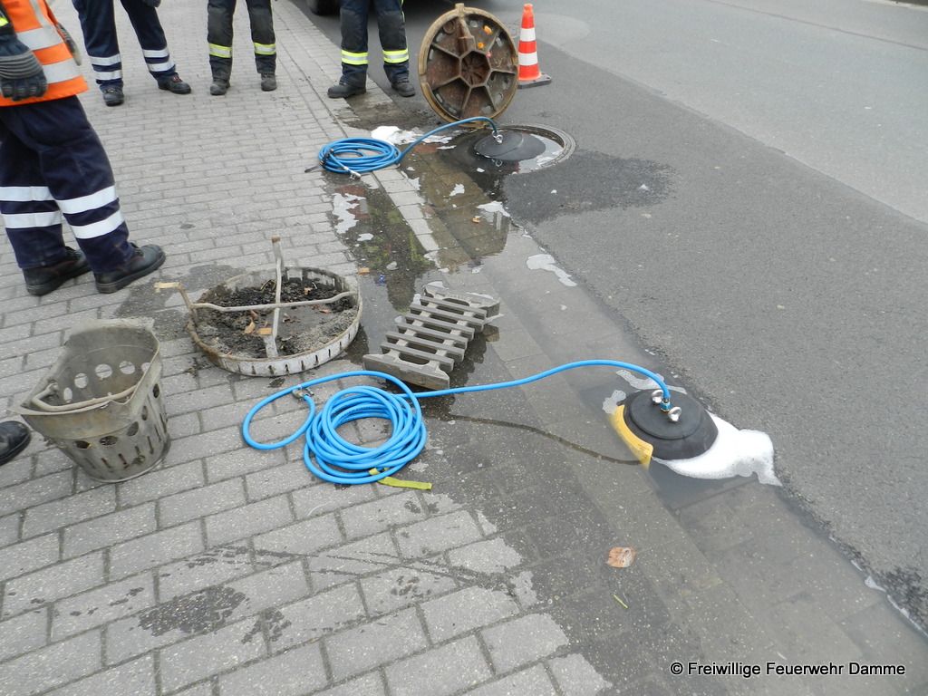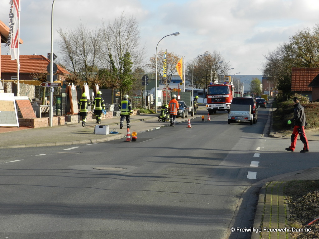 Im Einsatz: PKW Stv. OrtsBM, TLF 16/ 25, LF 16 TS, ELW 1, RTW 2 Malteser Damme, Polizei Damme, Bauhof Damme, OOWV, Westnetz.